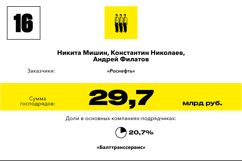 Журнал Forbes опубликовал ежегодный рейтинг «Короли госзаказа», в который вошли владельцы компаний, получивших крупнейшие господряды в 2016 году