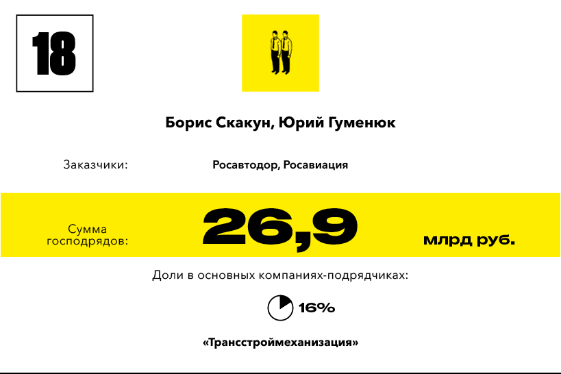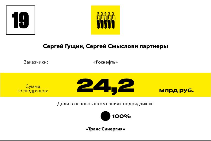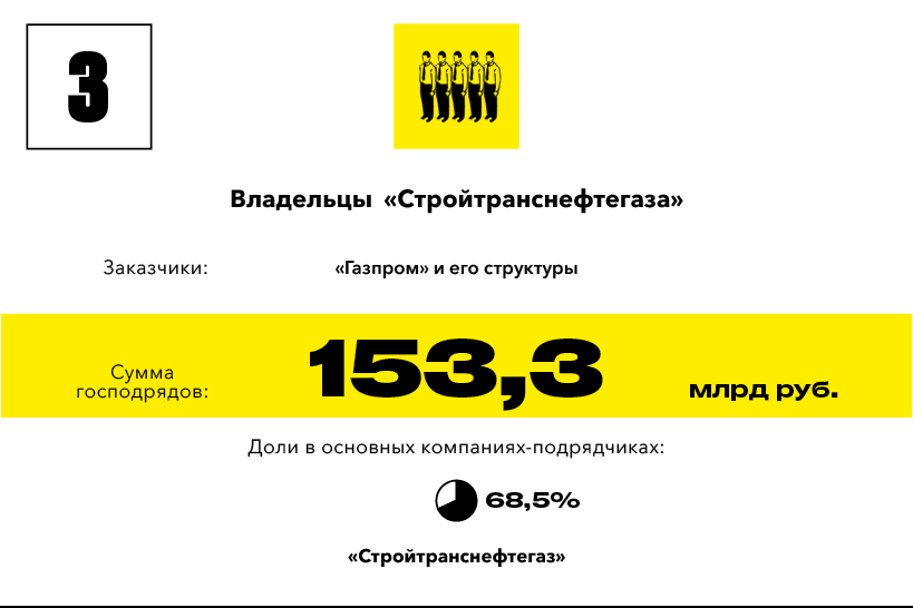 Подавляющее большинство крупных заказов государственные учреждения и госкомпании в 2016 году раздали даже без имитации конкурентной борьбы. Правительство Крыма, беря пример с федеральных властей, отдельными распоряжениями назначает строителей многомиллиардной трассы «Таврида». «Газпром» все так же, без тендеров, распределяет заказы на строительство трубопровода «Сила Сибири». С какими-то оговорками можно объяснить, почему монополия желала, чтобы трубопровод строил непременно «Стройгазмонтаж» Аркадия Ротенберга или «Стройтрансгаз» Геннадия Тимченко: проект большой и очень ответственный, а производственная мощность и опыт этих компаний не вызывают вопросов. Теперь у «Газпрома» появились совсем уж экзотические, на первый взгляд, желания — отдавать заказы неизвестным или малоизвестным компаниям. Предприятие Евгения Лавриненко «Томскпромтранс» с пятью сотрудниками получило 40 подрядов на 8 млрд рублей на строительство объектов «Силы Сибири». И это только верхушка айсберга. Первое место в рейтинге «Короли госзаказа — 2016» заняли владельцы уфимского НИПИ НГ «Петон» с подрядами от «Газпрома» на 176 млрд рублей. «Петон», конечно, не микропредприятие с пятью сотрудниками, но размер компании с выручкой 1,9 млрд рублей в 2015 году несопоставим с объемом полученных подрядов.