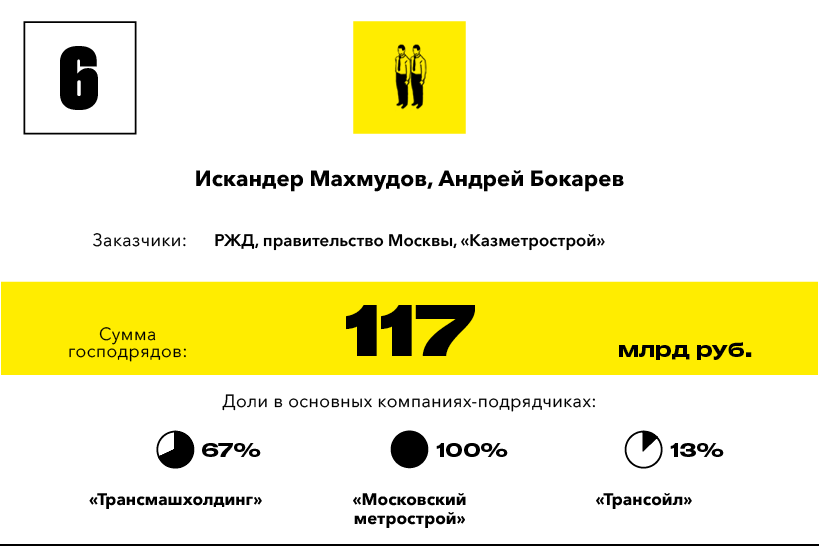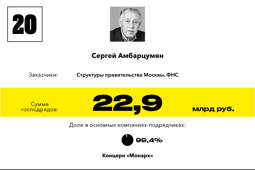 Рейтинги, Короли госзаказа — 2015, Короли госзаказа — 2016, Крупнейшие Господрядчики 2012, Список лиц против которых введены санкции Запада,